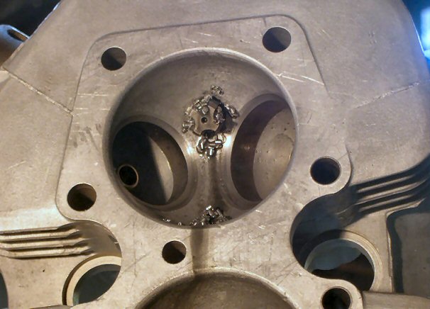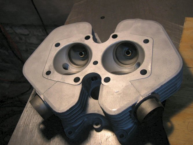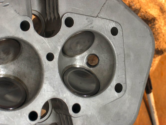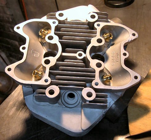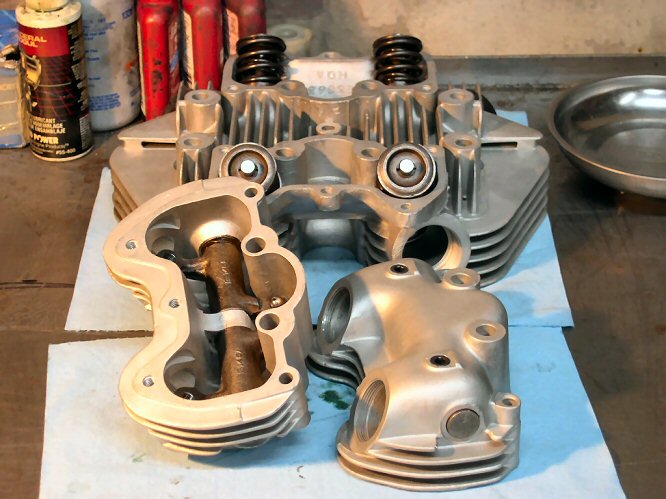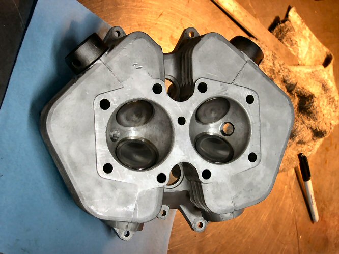 Head & rocker boxes built. Head required four new valve guides and seats reconditioned. Intake valves were damaged and required replacement. One spark plug hole was almost completely stripped. Rocker box components were in good shape. Notes below.