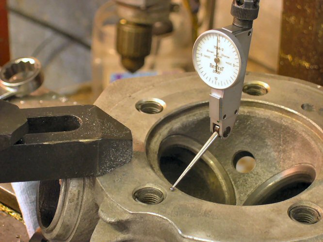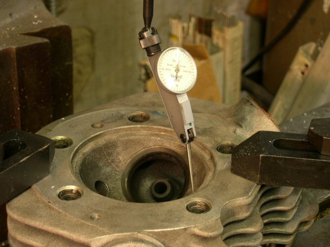 Locating the head gasket plane to be perpendicular to the spindle axis.